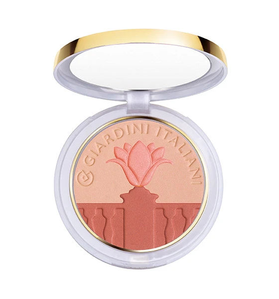 Una creazione preziosa che si ispira ai classici Giardini Italiani, sinonimo in tutto il mondo di eccellenza, arte e cultura. Il fascino e la suggestione di un magico giardino racchiuso in una palette di impalpabili polveri da utilizzare come fard, ombretti e punto luce. Il sapiente gioco di textures, perlate e satinate, e l’originale combinazione dei colori consentono di realizzare di volta in volta diverse tipologie di make-up, dal più romantico e naturale a quello più sofisticato e d’effetto. LOOK DA GIORNO Make-up Viso: applica il colore della parte bassa della cialda a ridosso dello zigomo, dall’esterno verso il centro del viso. Make-up Occhi: applica il colore al centro su tutta la palpebra mobile. Sfuma il colore più in basso nell’incavo fra palpebra mobile e palpebra fissa per dare intensità allo sguardo. Infine applica il colore più in alto appena sotto l’arcata sopraccigliare nella parte più esterna dell’occhio per creare un punto luce. LOOK DA SERA Make-up Viso: sfuma il colore della parte alta della cialda su tutto il viso, intensificandolo su fronte e naso. Applica il colore più in basso a ridosso dello zigomo, dall’esterno verso il centro del volto. Sfuma il colore più in alto fra il colore precedentemente applicato sullo zigomo e la parte inferiore dell’occhio. Make-up Occhi: applica il colore più in basso sulla palpebra mobile e lungo l’attaccatura delle ciglia sulla palpebra inferiore dell’occhio. Sfuma il colore al centro della cialda verso l’esterno dell’occhio.